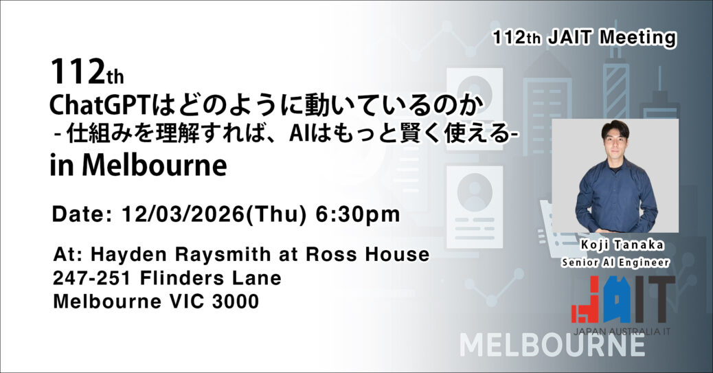 日本企業でエンジニアとして経験を積んだ後、モナッシュ大学院で修士号を取得。現在は米国本社のAI企業メルボルン支社にてSenior AI Engineerとして勤務。アメリカ、オーストラリアでAIエージェントの研究開発に取り組んでいます。
